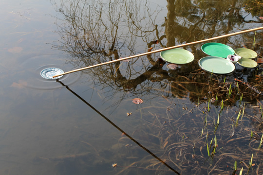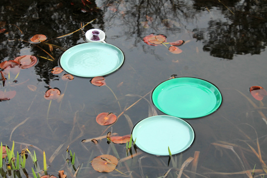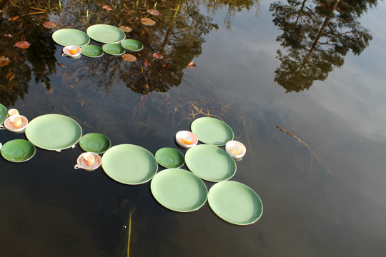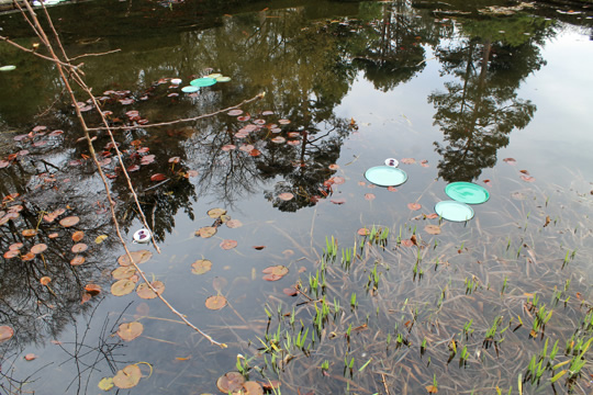 On Mothering Sunday 2014, a little before the start of the water lily season, 5 mini-fleets of imposters were introduced to the pool in an attempt to add some early colour and extend the Pool Garden's season of interest. Wayward and half-hardy, the exotic imposters were nurtured and nudged towards the structured perfection of their surroundings.